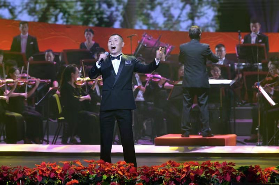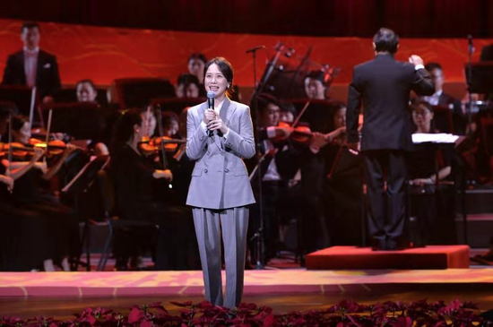 由著名歌唱家殷秀梅领衔演唱的《我和我的祖国》将诗歌朗诵音乐会推向高潮。在全场大合唱《歌唱祖国》的热烈氛围中,晚会降下了帷幕。整台演出大气磅礴、催人奋进、激荡人心。