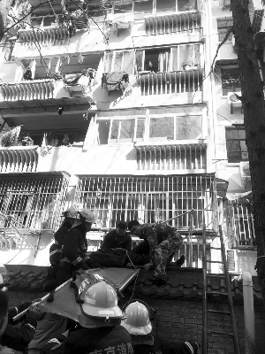 儿子、邻居赶紧拨打急救电话,可王奶奶摔在院内平房顶上,医护人员没法上去,只得喊消防员,几名消防员赶到后爬上屋顶,将老人抬到地面。