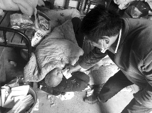 当天上午,周师傅给毛大爷喂了两个馒头。到了晚上,他在里屋听到毛大爷一直在大声喊。他跑出屋看到毛大爷裹着棉被冻得直抖。担心毛大爷出事,他便报了警。