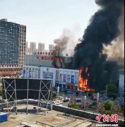 苏州一小商品市场突发大火 现场火势凶猛黑烟冲天