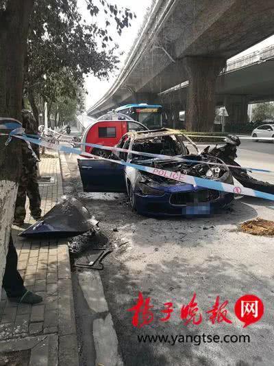 南京街头玛莎拉蒂突起火 百万豪车被烧成空壳