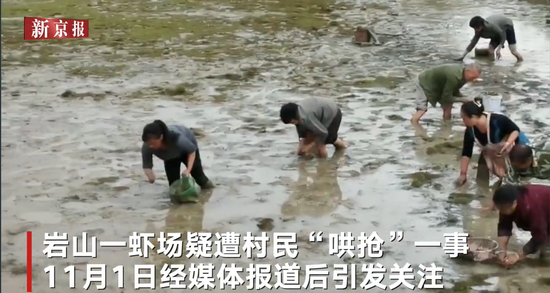 据新京报11月2日报道,最近一次哄抢发生在10月21日。工作人员劝阻下塘抢虾的村民,见后者不肯,就要动手把他们推上去。结果发生了肢体冲突,刘正轩就报警了。