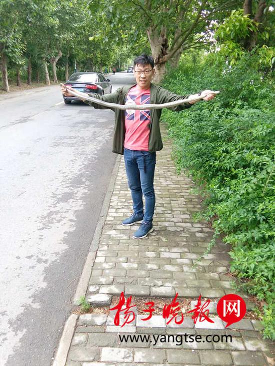扬州版大蛇被困装死 被警民救出却“反咬一口”