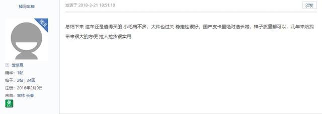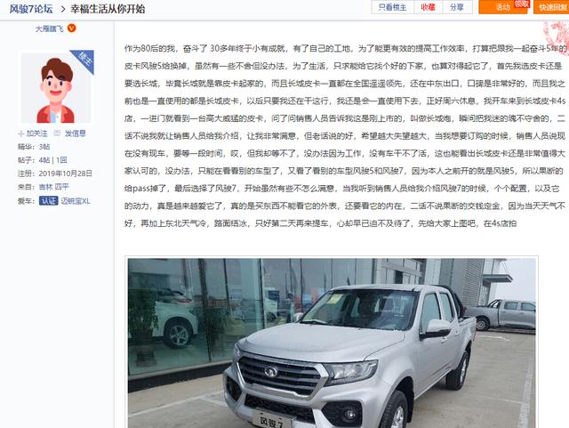 风骏系列作为一款偏向商用的皮卡,性能稳定、品质可靠是第一位的,这也是许多个体经营者选择风骏的原因。在车友论坛中有不止一个人提到: 风骏5赚第一桶金,风骏7再接再厉。