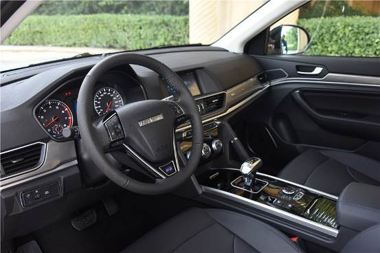 置身车内,2018款哈弗H6运动版整体内饰以黑色为主,点缀有镀铬装饰,看起来颇具质感。带有换挡拨片的三辐式多功能方向盘、8英寸高清触摸屏、电子换挡杆等设计,让整个内饰的豪华氛围再度升级。