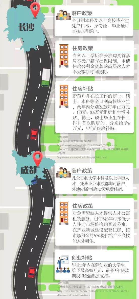 政策刺激下,2017年13.96万大学毕业生落户武汉,同比增加535%;超11万全日制本科以上青年人才落户成都,增幅明显……