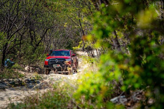 在碎石路等地形复杂的越野路面,开启蠕行模式后,驾驶者就可以从频繁的“刹车-油门”操作中解放出来,集中精力应对前方道路,哪怕是刚拿到驾照的新手,越野初体验不至于太狼狈。而大幅度减少转弯半径的坦克调头功能,让车辆在狭窄路段的通过性更佳,如果你没有上百万预算购买兰德酷路泽和雷克萨斯LX570,那么也可以在长城炮越野皮卡上体会这项神奇的黑科技。