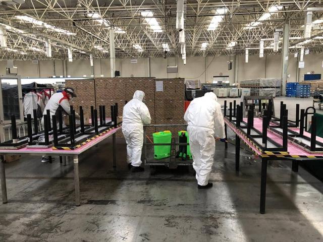 到达长城重庆工厂的门口,“通关模式”才正式开始。首先是门口“全副武装”的保安大哥核对名单,然后对每个人消毒和测温,体温正常才可以进入园区。然后,工作人员给每个进入厂区的同事发了口罩,据说以后每天都会供应,之前我担心的口罩问题看来也是多此一举了。