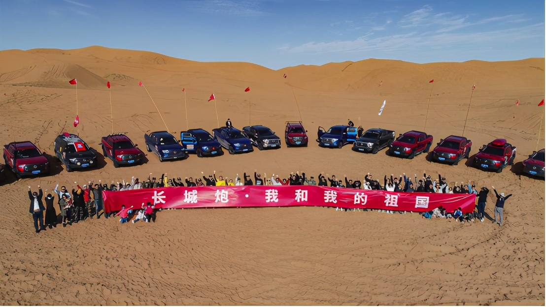 10月初,长城炮官方车友会“炮火联盟”近百名车主出征阿拉善,玩转英雄会,在大漠黄沙中刷锅冲坡,体验极致穿越的乐趣。同时,车主们手挽手齐声高歌《我和我的祖国》,共同庆祝祖国71华诞,并团队协作,画出了一台又一台个性张扬的DIY长城炮。在这场辉煌盛大的越野嘉年华中,他们还与摇滚老炮周晓鸥一起点燃热情的沙漠。