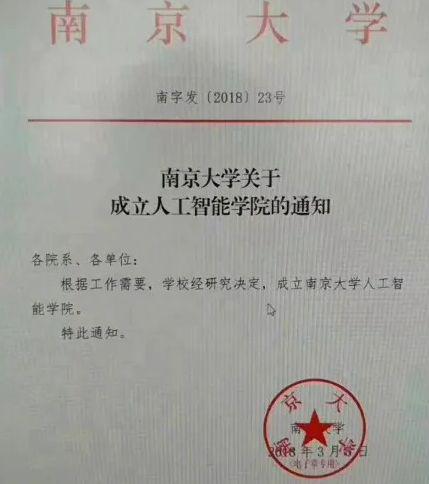 3月6日,南京大学官网正式发布新闻,经研究决定,南京大学正式成立人工智能学院。今年政府工作报告中四次提及“智能”,并特别指出要“加强新一代人工智能研发应用”、“发展智能产业”。