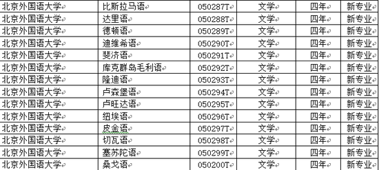教育部上述2017年度高校本科专业备案和审批结果显示,北京外国语大学此次新增审批专业14个,全部为此前没有的小语种专业。其中包括斐济语、库克群岛毛利语、卢森堡语、桑戈语等。